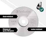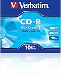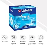 Verbatim CD-R High Capacity, CD-Rohlinge mit 800 MB Datenspeicher, ideal für Foto- und Video-Aufnahmen, kompatibel mit jedem konventionellen CD-Laufwerk, 10er Pack Jewel Case