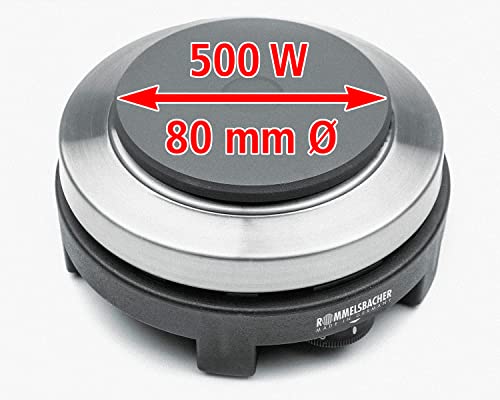 ROMMELSBACHER Reisekochplatte RK 501 - Made in Germany, Gussheizplatte 80 mm Ø, ideal für Reise und Camping, stufenlos regelbar, Überhitzungsschutz, Kabelaufwicklung, 500 Watt, Edelstahl/schwarz