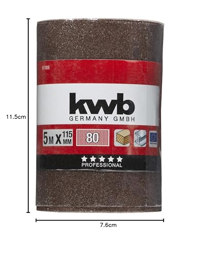 kwb Schleifrolle 5 m x 115 mm aus Korund mit Körnung 80, hochwertiger Kunstharz-Verleimung und verstärktem Papierträger für den groben Schliff von Holz und Metall