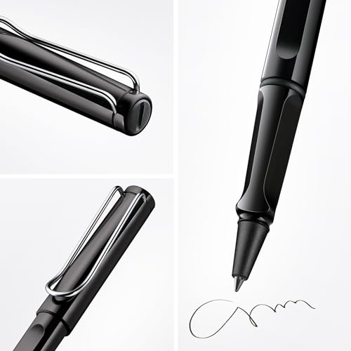 Lamy safari black Tintenroller – zeitlos klassischer Stift mit ergonomischem Griff & Strichbreite M - Gehäuse aus robustem ASA-Kunststoff – mit Tintenrollermine M 63 in schwarz