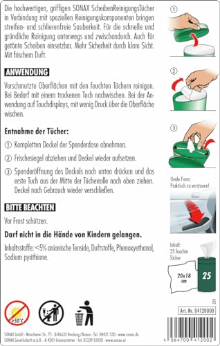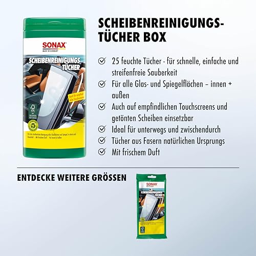 SONAX Reinigungstücher, für Scheiben 04120000 , 25 Tücher in wiederverschließbarer Box