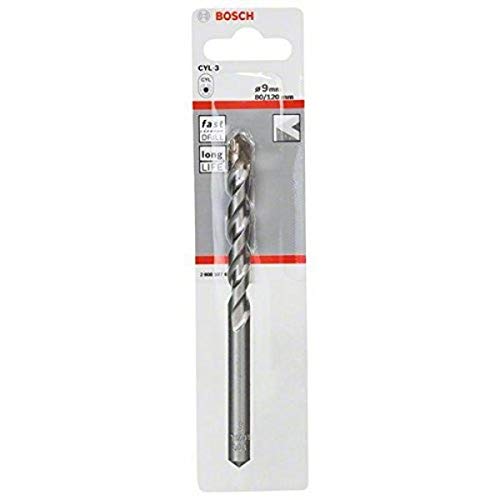 Bosch Accessories Professional 1x Betonbohrer CYL-3 (für Beton, Ø 9 x 80 x 120 mm, Zubehör Schlagbohrmaschine), Grau, 1 Stück