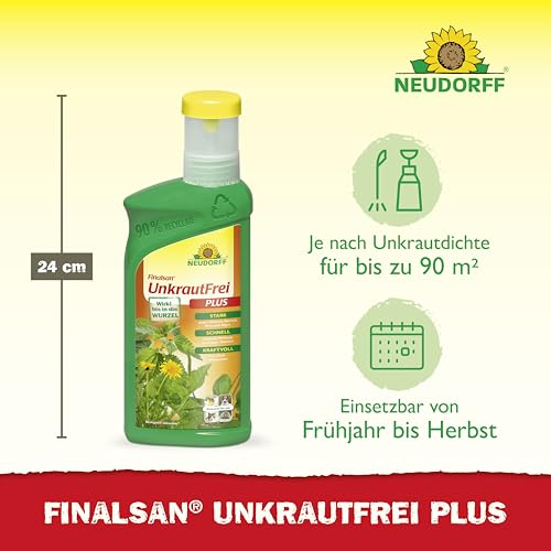Neudorff Finalsan UnkrautFrei Plus – Kraftvoller, schnell wirkender Unkrautvernichter, der bis in die Wurzel wirkt. Konzentrat für 90 m², 500 ml
