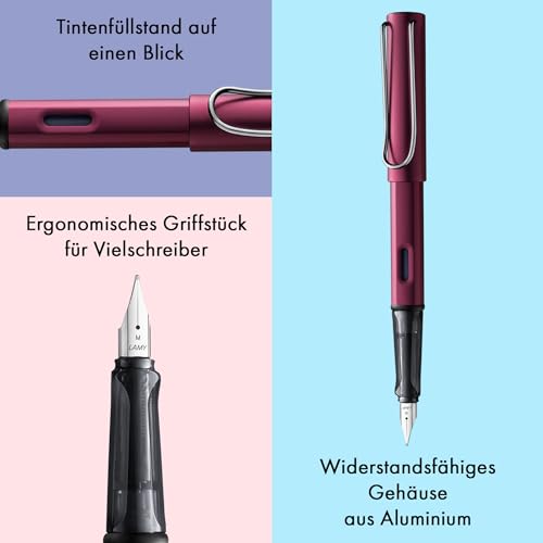 Lamy AL-star black purple Füller – Füllhalter mit ergonomischem Griff & polierter Stahlfeder in Strichbreite EF – leichtes Aluminiumgehäuse – inkl. Tintenpatrone T 10 blau – Rechtshänder