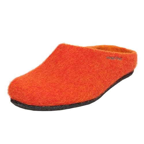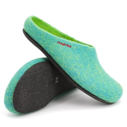 Magicfelt Filzpantoffeln 709 aus Mulesing-freier Merino-Schurwolle – Handgefertigte & anatomisch geformte Hausschuhe für Damen & Herren Größe EU 36-50 – Filzclogs mit Filz-Latex-Sohle Anthrazit, 42