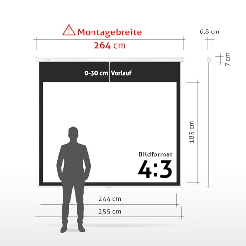 ESMART Professional MIROLO Rollo-Leinwand 264 cm Bild 244 x 183 cm (120") 4:3 | Heimkino Beamer Projektionsleinwand Rollo Leinwand LCD LED