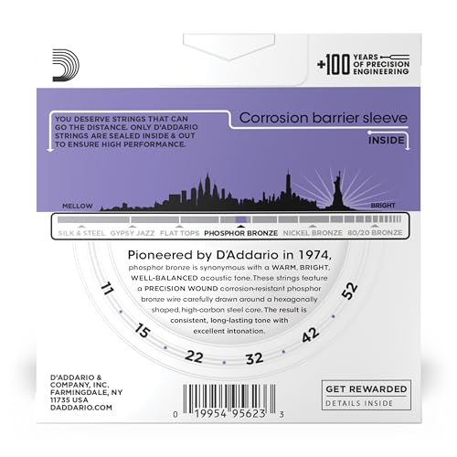 D'Addario Akustikgitarrensaiten, Phosphorbronze, EJ26-10P, Custom Light Gauge 11-52, 6-Saiten-Set, 5er-Pack