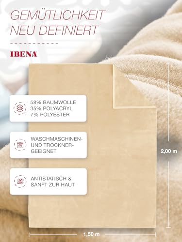 Wohndecke IBENA Luxus, beige, B:150cm L:200cm, Baumwolle, Kunstfaser, Wohndecken, verschiedene Größen, unifarbenes Design, Kuscheldecke, Made in Europe