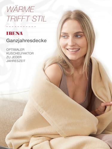 Ibena Porto Decke 150x200 cm – Baumwollmix weich, warm & waschbar, Kuscheldecke creme einfarbig