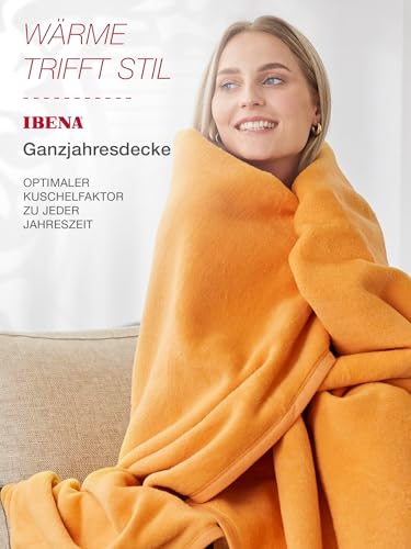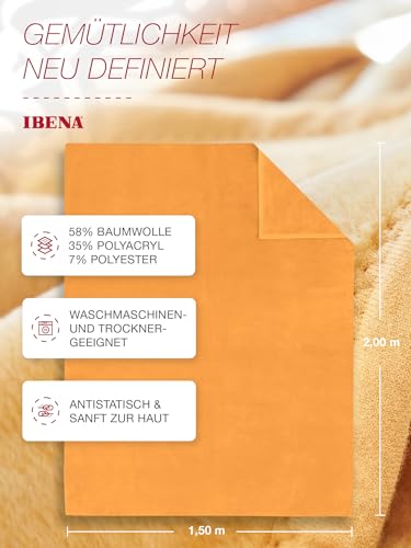 Ibena Porto Decke 150x200 cm – Baumwollmix weich, warm & waschbar, Kuscheldecke gelb Gold einfarbig