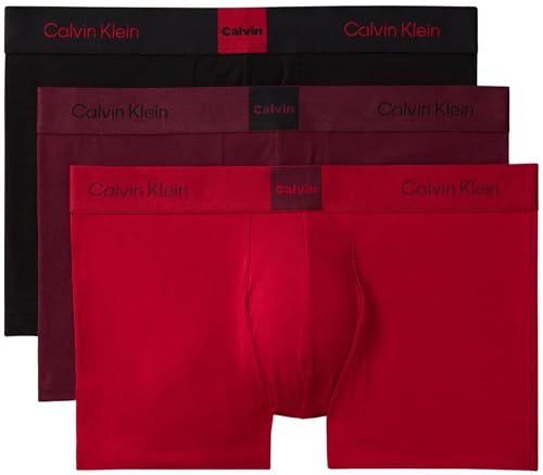 Calvin Klein Herren Boxershorts Low Rise TRUNK, 3er Pack U2664G, Ohne Eingriff, Mehrfarbig ( Mehrfarbig (I03 White/Red Ginger/Pyro Blue) ) - X-Large