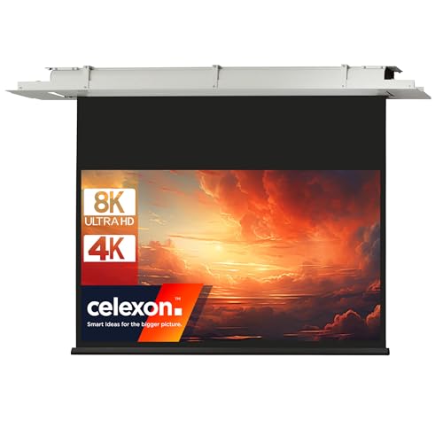 celexon Expert Deckeneinbau-Motor-Leinwand 115" | 250x140 cm 16:9 | elektrische 8K, Full-HD Einbauinstallation für Ihre Beamer-Projektionen | zur Integration in die Zimmerdecke | inkl. Wandschalter