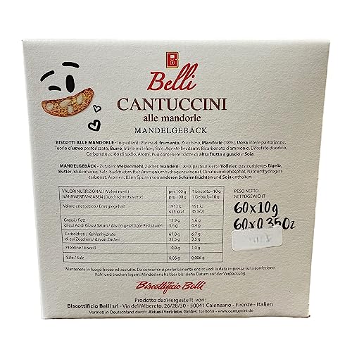 Belli Cantuccini Mandelgebäck 600G [DOPPELT GEBACKEN] mit 18% Mandel-Anteil | 60 Kekse pro Box | Italienische kekse | mit Blütenhonig | Biscotti di Prato