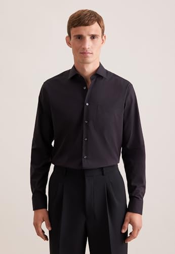 Businesshemd SEIDENSTICKER Schwarze Rose, Herren, Gr. 3XL (48), normale Ärmellängen, schwarz, 100% Baumwolle, unifarben, regular fit, 2-Knopf-Manschette, Hemden, Regular 1/1 Kentkragen Uni
