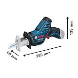 Bosch Professional 12V System Akku Säbelsäge GSA 12V-14 (Schnitttiefe Holz/Metallprofile: 65/50mm, inkl. 2 Sägeblätter, ohne Akku/ Ladegerät)