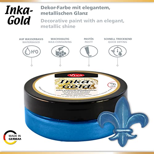 Viva Decor Inka Gold 62,5g (Stahlblau) - Einfach auftragbare, wachshaltige Metallic Polierpaste. Schnell Trocknender Metallglanz, Hochglanz-Effekte für DIY. Dekorpaste für Holz, Ton & Terracotta