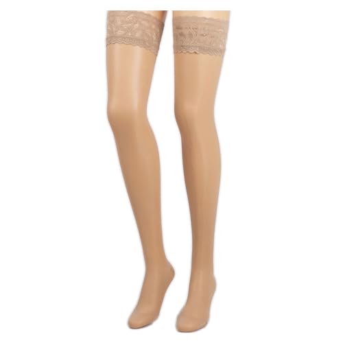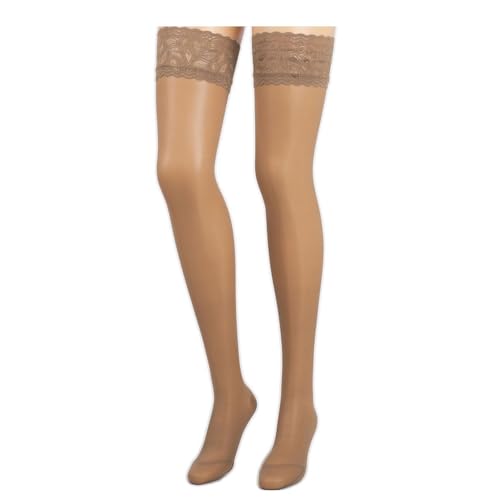 COMPRESSANA Calypso 70 den - Feinstrick Schenkelstrümpfe mit Spitzenhaftband - mittlere Stützwirkung mit 12-14 mmHg Kompression (Stütz-Klasse 2) - weich, luftig und transparent (appearance 20 den) - Größe III - Farbe romance - 1 Paar