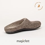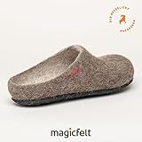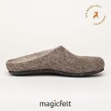 Magicfelt Filzpantoffeln 709 aus Mulesing-freier Merino-Schurwolle – Handgefertigte & anatomisch geformte Hausschuhe für Damen & Herren Größe EU 36-50 – Filzclogs mit Filz-Latex-Sohle Brown, 45
