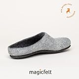 Magicfelt Filzpantoffeln 709 aus Mulesing-freier Merino-Schurwolle – Handgefertigte & anatomisch geformte Hausschuhe für Damen & Herren Größe EU 36-50 – Filzclogs mit Filz-Latex-Sohle Grau, 45