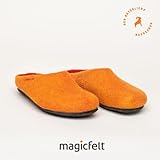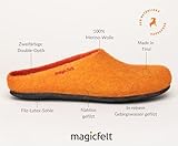 Magicfelt Filzpantoffeln 709 aus Mulesing-freier Merino-Schurwolle – Handgefertigte & anatomisch geformte Hausschuhe für Damen & Herren Größe EU 36-50 – Filzclogs mit Filz-Latex-Sohle Orange, 42