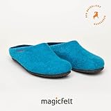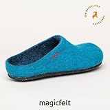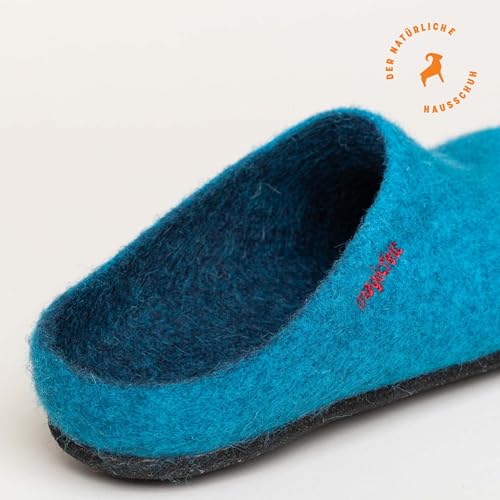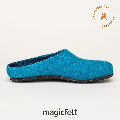 Magicfelt Filzpantoffeln 709 aus Mulesing-freier Merino-Schurwolle – Handgefertigte & anatomisch geformte Hausschuhe für Damen & Herren Größe EU 36-50 – Filzclogs mit Filz-Latex-Sohle Petrol, 38