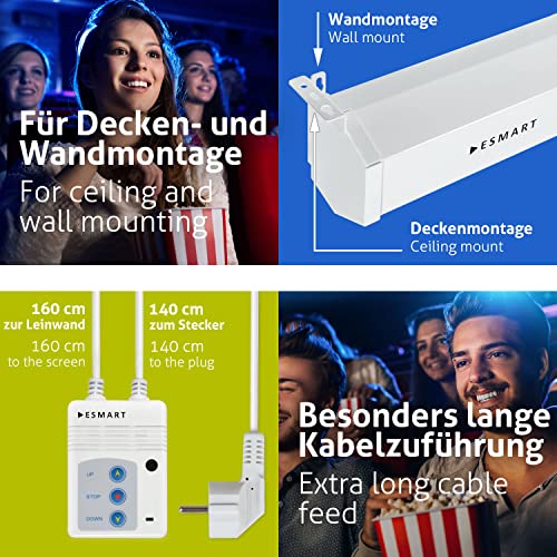 ESMART Professional MIMOTO Motor-Leinwand 327 cm Bild 305 x 229 cm (150") 4:3 | Programmierbare Fernbedienung | Heimkino elektrische Beamer Projektionsleinwand Motor Leinwand LCD LED
