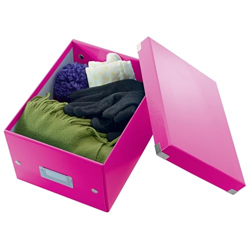 Leitz Click & Store Aufbewahrungsbox mit Deckel Klein, Box für Unterlagen bis A5 im Büro u. Haushalt, Transportbox aus 84% recycelter Premium-Hartpappe, Etikettenhalter, Pink, 60430023