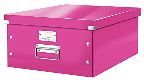 Leitz Click & Store Aufbewahrungsbox mit Deckel Groß, Box für Unterlagen bis A3 im Büro oder Haushalt, Transportbox aus 85 % recycelter Premium-Hartpappe, Stabile Metallgriffe, Schwarz, 60450095