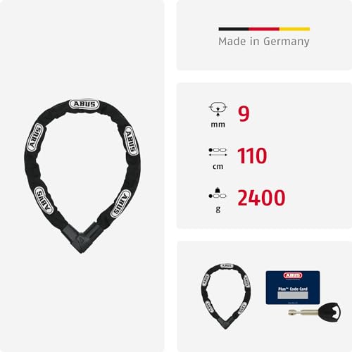 Abus Kettenschloss Citychain 1010/110 – Fahrradschloss aus gehärtetem Stahl – Sicherheitslevel 12 – 110 cm – 12042 – Schwarz, Schwarz (Black)