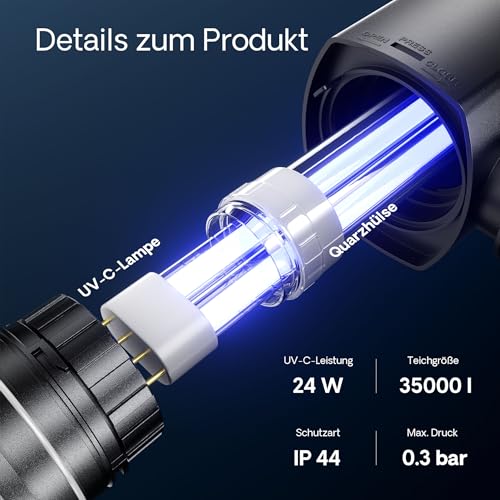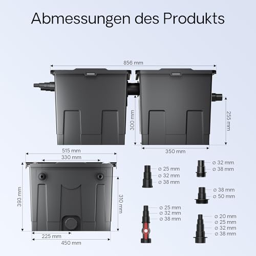 Wiltec Komplettset: CBF-350B Teichfilter bis 60000 L Teichfilteranlage als Durchlauffilter, CUV-224 Teichklärer UVC Klärer mit 24 Watt UV-C Leistung