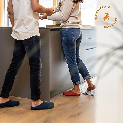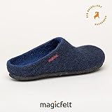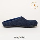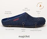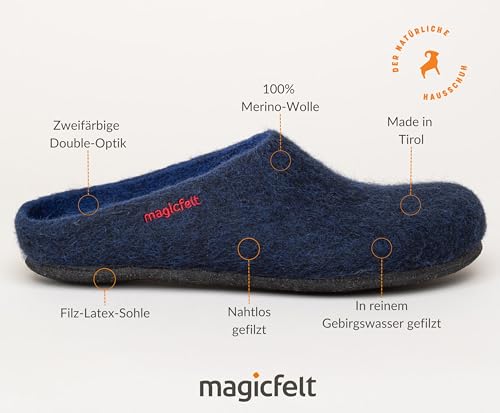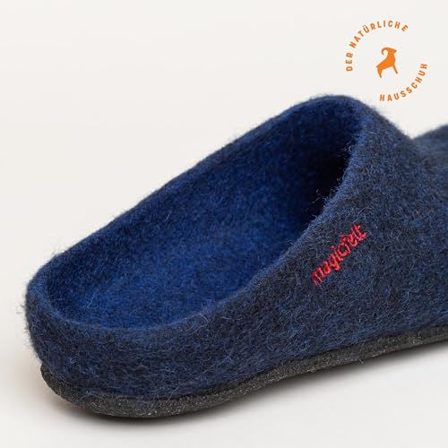 Magicfelt Filzpantoffeln 709 aus Mulesing-freier Merino-Schurwolle – Handgefertigte & anatomisch geformte Hausschuhe für Damen & Herren Größe EU 36-50 – Filzclogs mit Filz-Latex-Sohle Midnight, 42