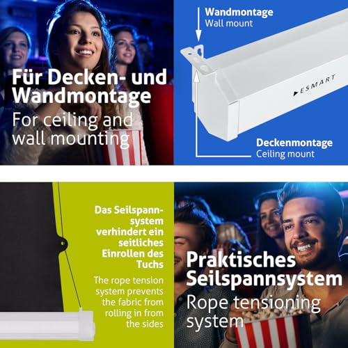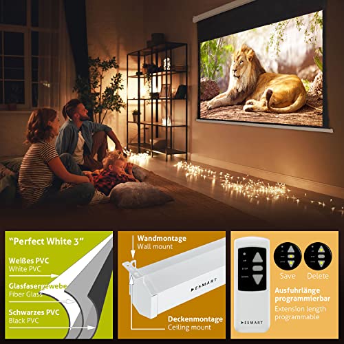 ESMART Professional TATENSO Tension-Leinwand 258 cm Bild 221 x 125 cm (100") 16:9 | Programmierbare Fernbedienung | Heimkino elektrische Beamer Projektionsleinwand Motor Leinwand LCD LED
