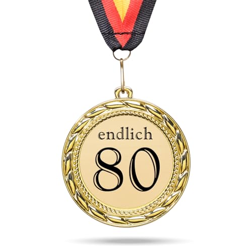 andSmile Medaille mit Gravur - Endlich 80 - Orden aus hochwertigem Metall - 80. Geburtstag Geschenk für Mann & Frau - lustige Geschenkidee, Geburstatgsgeschenk 80 Jahre