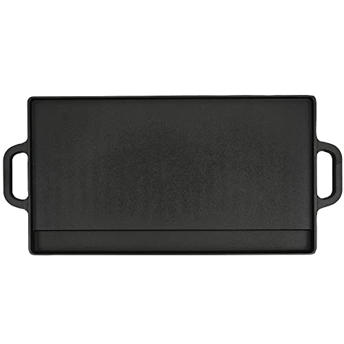 BBQ-Toro Wende-Grillplatte mit Griffen aus Gusseisen, 50 x 23 x 1,5 cm, bereits eingebrannt