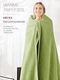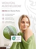 Ibena Porto Decke 150x200 cm – Baumwollmix weich, warm & waschbar, Kuscheldecke grün einfarbig