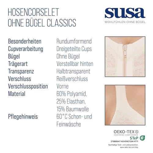 Susa Hosenkorselett ohne Bügel Classics I Korselett Damen I Shapewear Damen stark formend I Mieder, Body mit Shaping Effekt I Formt Taille, Bauch & Po