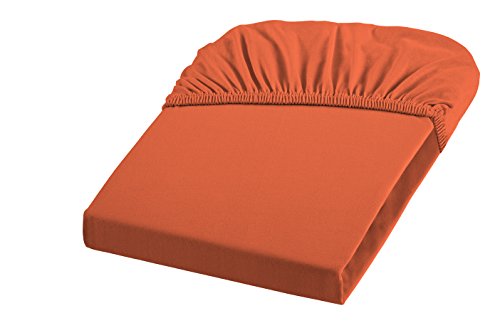 fleuresse Jenny C klassisches Jersey-Spannlaken, 100% Baumwolle, mit praktischem Rundumgummi, Fb. Chili, Größe 100 x 200 cm, auch passend für 90 x 190/200