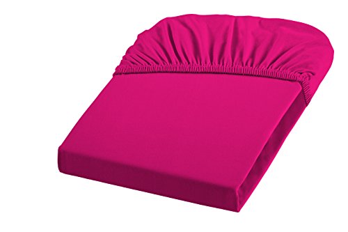 fleuresse Jenny C klassisches Jersey-Spannlaken, 100% Baumwolle, mit praktischem Rundumgummi, Fb. Pink, Größe 150 x 200 cm, auch passend für 140/160 x 200