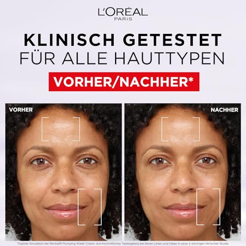 L'Oréal Paris Aufpolsternde Gel-Creme für Frauen: polstert Fältchen intensiv auf mit Hyaluronsäure, Niacinamide, Glycerin und Ceramide, Revitalift Filler, 1x 50ml