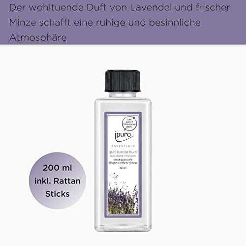 ipuro lavender touch - preiswerter Raumduft Nachfüller mit besinnlichem Lavendel - Duftöl Refill mit Duftstäbchen - Raumduft Diffuser Nachfüllflasche 200ml - Raumduft Nachfüllflasche inkl Duft-Sticks
