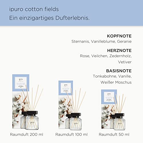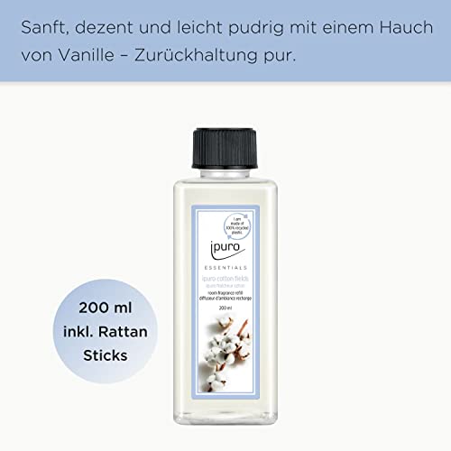 ipuro cotton fields - preiswerter Raumduft Nachfüller mit pudrigen Vanille Noten - Duftöl Refill Duftstäbchen - Diffuser Nachfüllflasche 200ml - inkl Duft-Sticks, (1 er Pack)