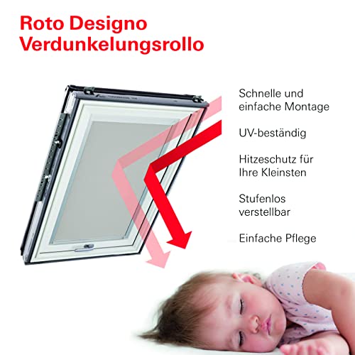 Original Roto Verdunkelungsrollo ZRV - Nahezu vollständige Verdunkelung - Führungsschiene Silber - Dachfenster Baureihe Designo R6/R8, i8 und Classic 64/84 - Größe 134/098 | 13/09 - Farbe Hellgrau
