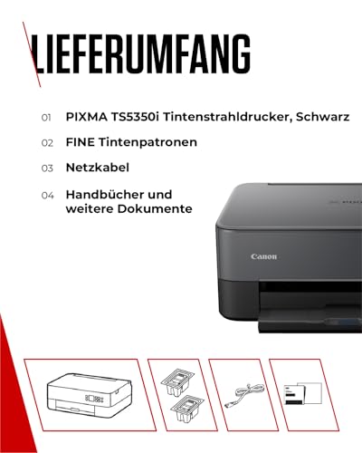 Canon PIXMA TS5350i Multifunktionsdrucker 3in1 (Tintenstrahl,Drucken, Kopieren, Scannen, A4, 3,7 cm OLED, WLAN, Duplexdruck, 2 Papierzuführungen, kompatibel mit Pixma Print Plan ABO) Schwarz