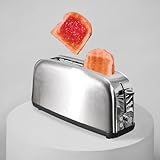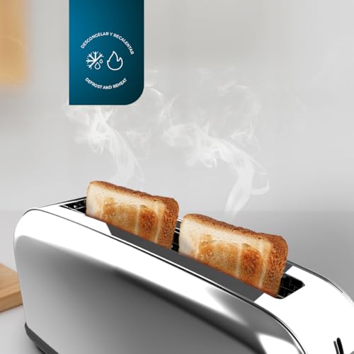 Cecotec Vertikaler Toaster 1 Langschlitz Toastin' time 850 Inox Long Lite, 850 W, 2 Scheiben Brot, 3,8 cm breiter Schlitz, Brötchenaufsatz und Krümelschublade, Edelstahl