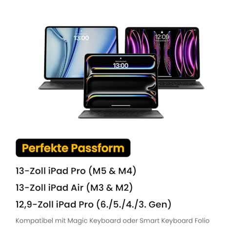 tomtoc 360° Tasche Schutzhülle für 13 Zoll iPad Pro M5/M4 2025-2024, 13 Zoll iPad Air M3/M2, 12,9" iPad Pro 6/5/4/3, Wasserabweisend Tablet Sleeve mit Zubehörfach, Passt Magic/Smart Keyboard
