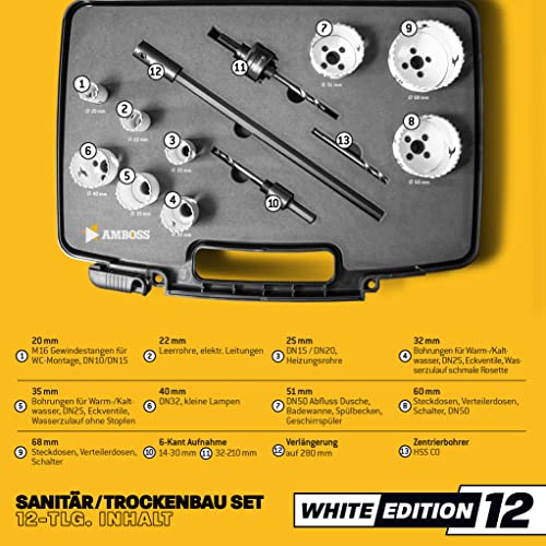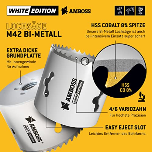 Amboss M42 BiMetall Lochsägen Set White Edition 12 - 12tlg. Ø20 bis 68 mm