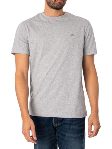 Gant Herren REG Shield SS T-Shirt, Grey Melange, XL