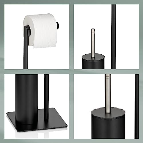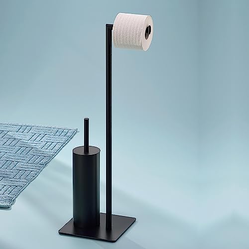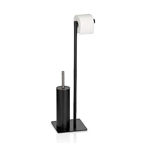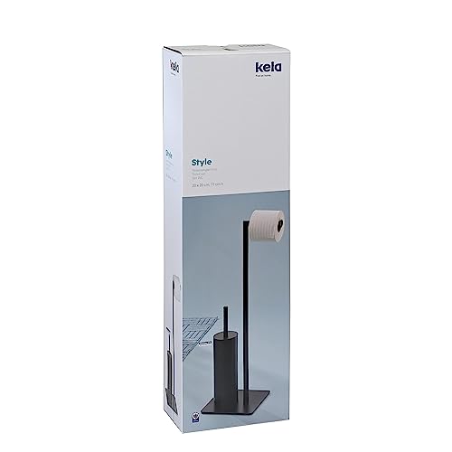 kela WC Garnitur mit Toilettenpapierhalter und Bürstentopf 71cm, Toilettenbürste schwarz mit geschlossenem Klobürstenhalter Style, Metall matt