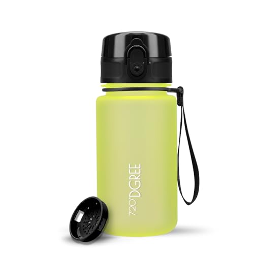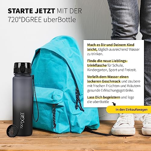 720°DGREE Trinkflasche Kinder 500ml “uberBottle“ softTouch +Sieb - Auslaufsicher, BPA-Frei - Flasche für Schule, Sport, Fitness - Wasserflasche aus Tritan - Schmal, Leicht, Stoßfest, Wiederverwendbar
