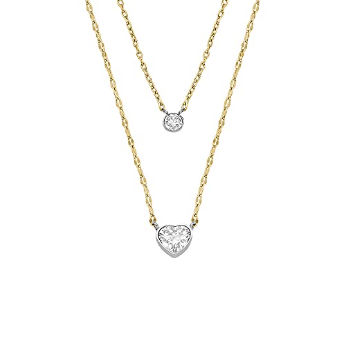 Kette mit Anhänger FOSSIL Schmuck Geschenk Edelstahl Halskette SADIE Kreis Herz, gelb (edelstahlfarben, gelbgoldfarben, kristallweiß), Halsketten, Damen, Edelstahl, L: 41, mit Zirkonia (synth.)